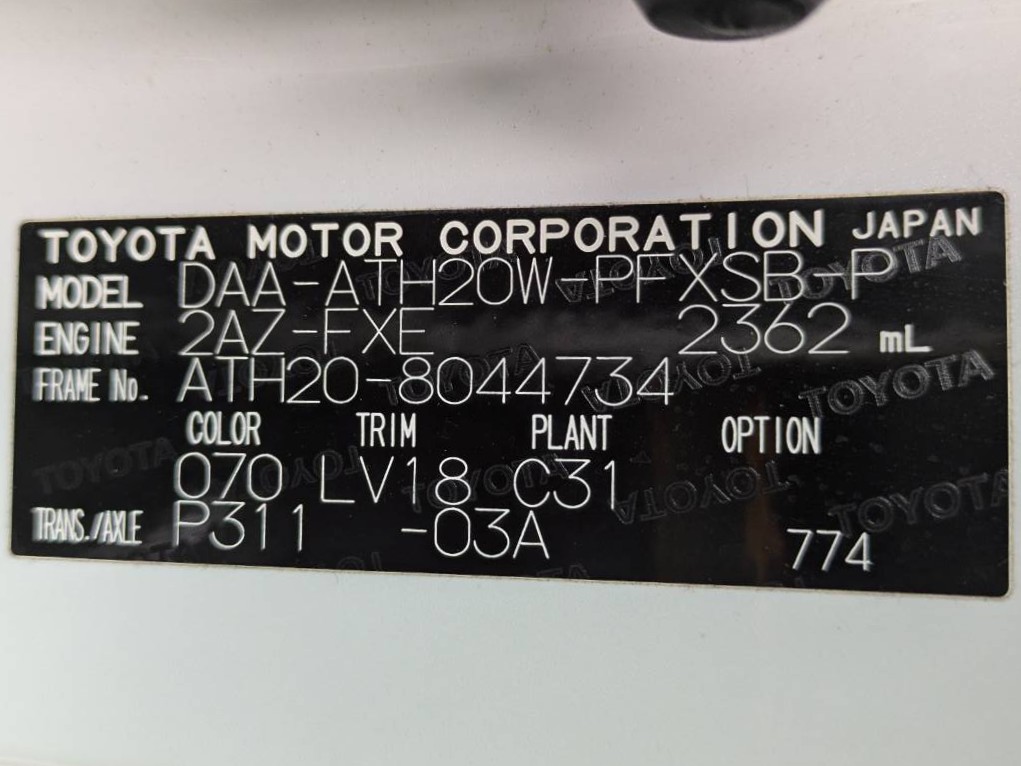 | 車名 | アルファード | 車台番号 | 734 |
