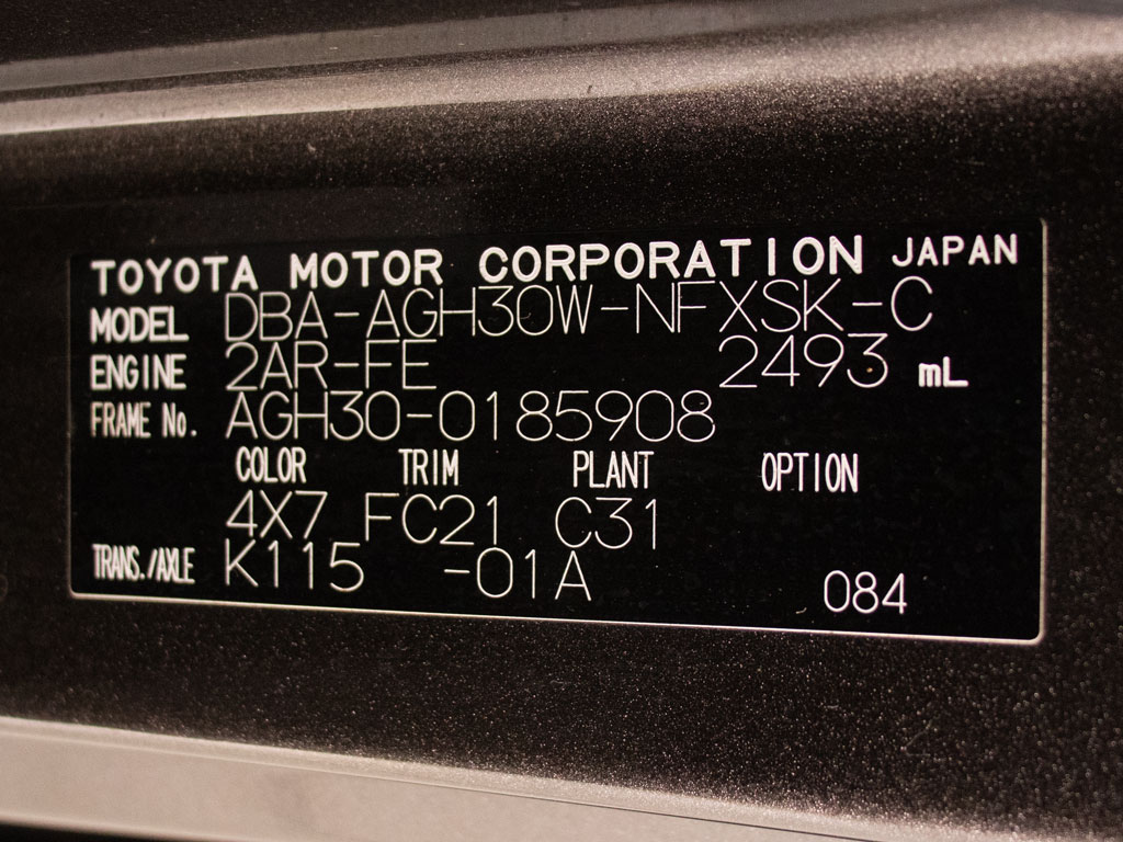 | 車名 | ヴェルファイア | 車台番号 | 908 |