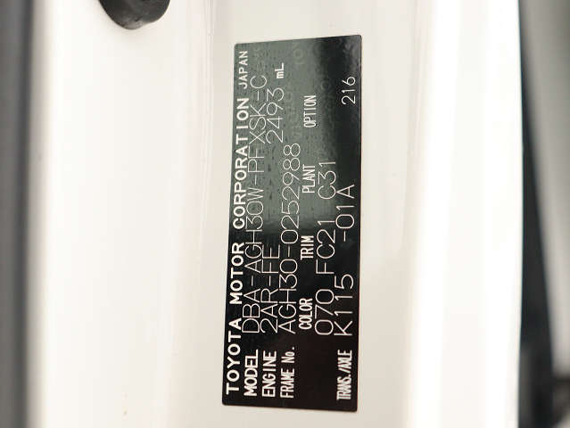 | 車名 | アルファード | 車台番号 | 988 |