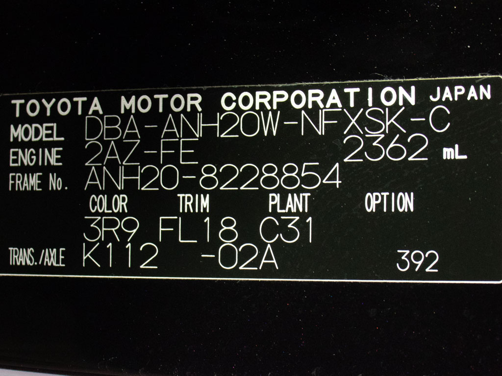 | 車名 | ヴェルファイア | 車台番号 | 854 |