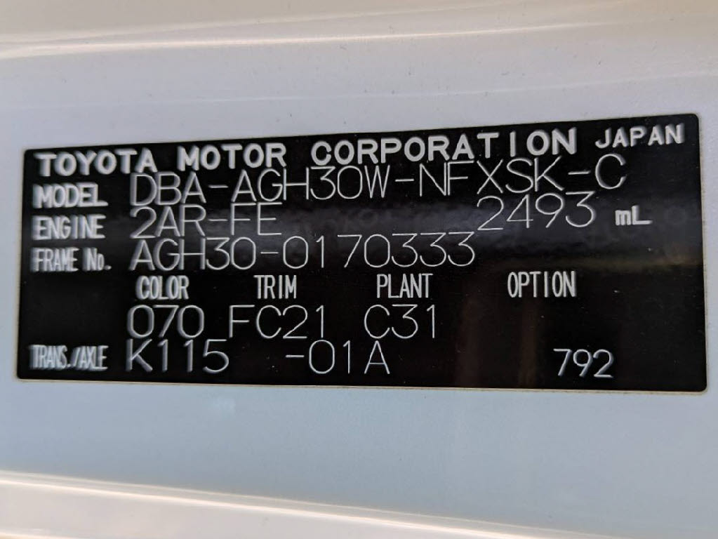 | 車名 | ヴェルファイア | 車台番号 | 333 |