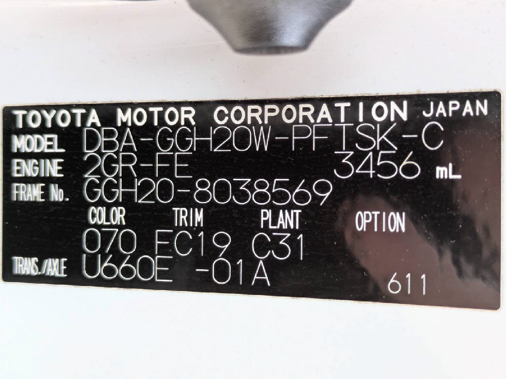 | 車名 | アルファード | 車台番号 | 569 |