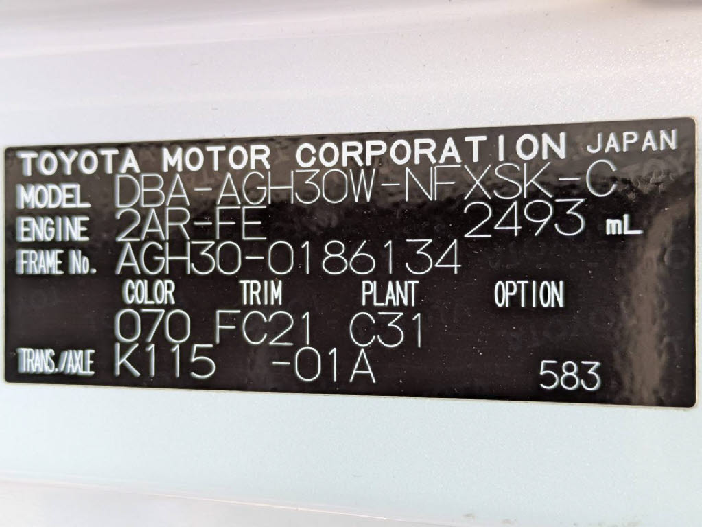 | 車名 | ヴェルファイア | 車台番号 | 134 |