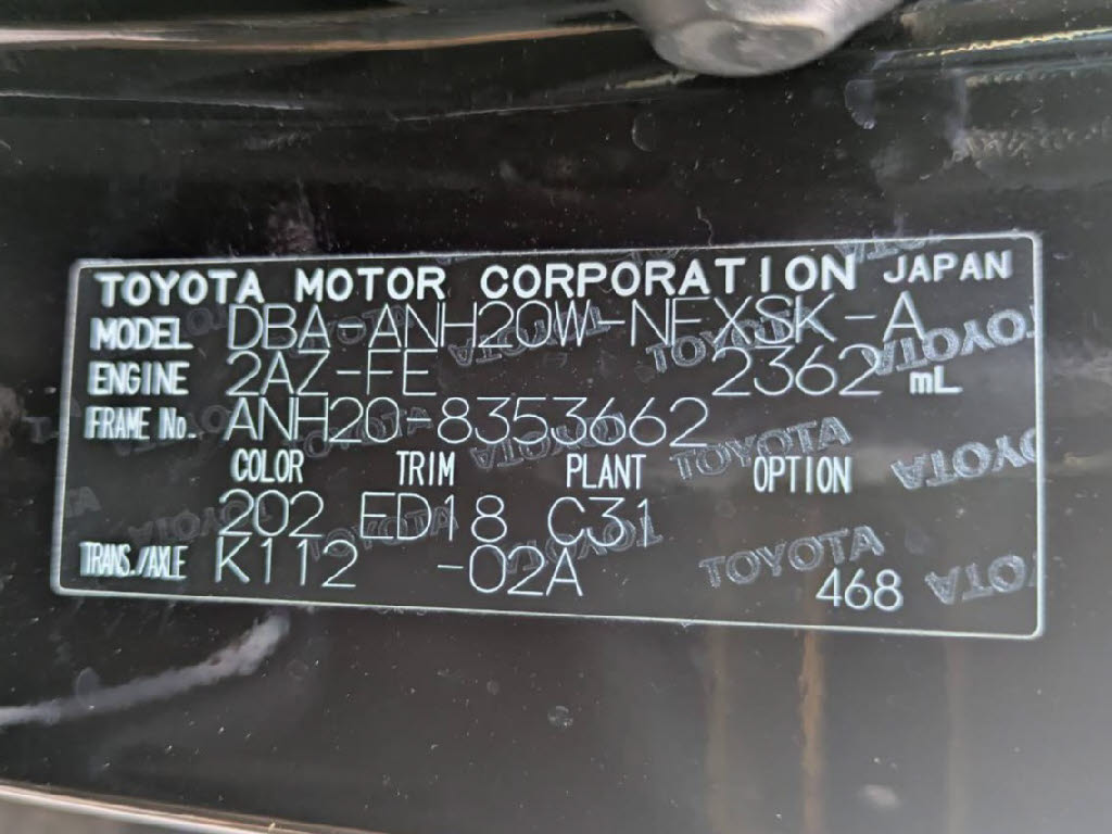 | 車名 | ヴェルファイア | 車台番号 | 662 |