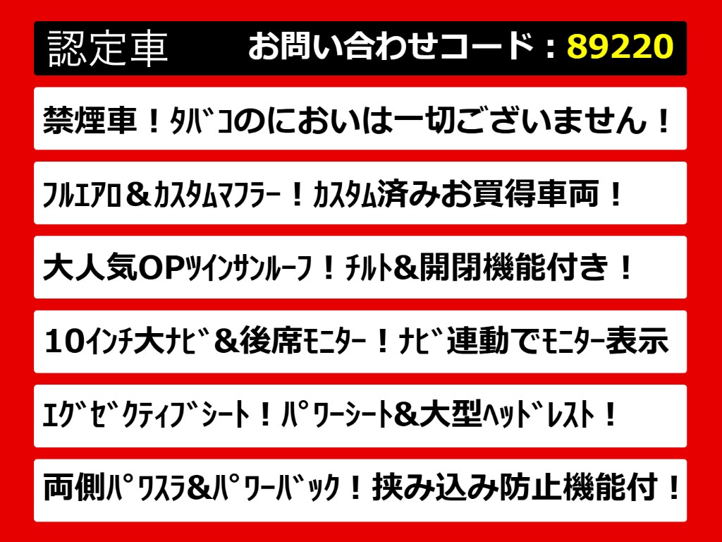 | グレード | ヴェルファイア 2.5Z-G サンルーフ 10インチナビ フルエアロ禁煙 |