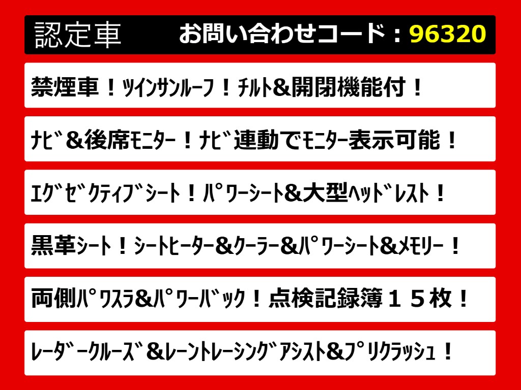 | グレード | ヴェルファイア 2.5Z-G サンルーフ 黒革 後席モニター 禁煙 |