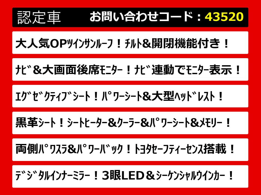 | グレード | アルファード 2.5S-C ツインサンルーフ 後席モニター 黒革シート |