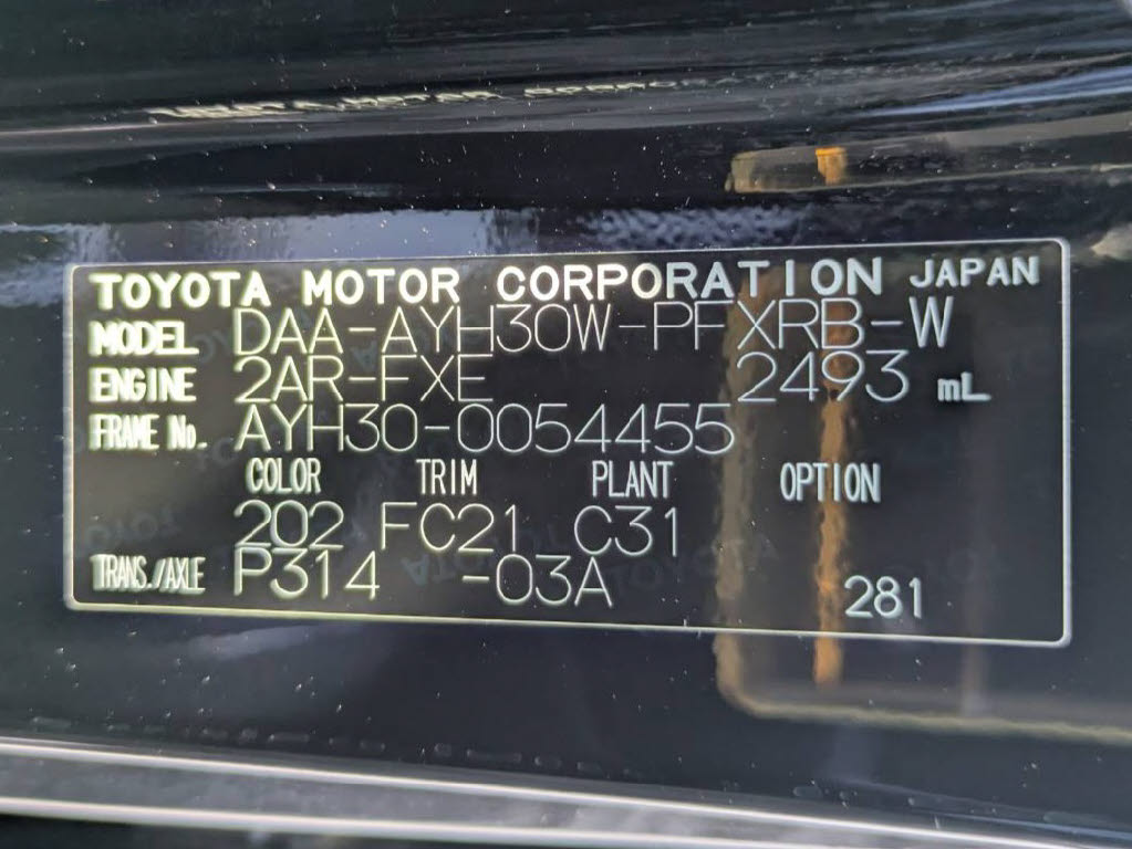 | 車名 | アルファード | 車台番号 | 455 |